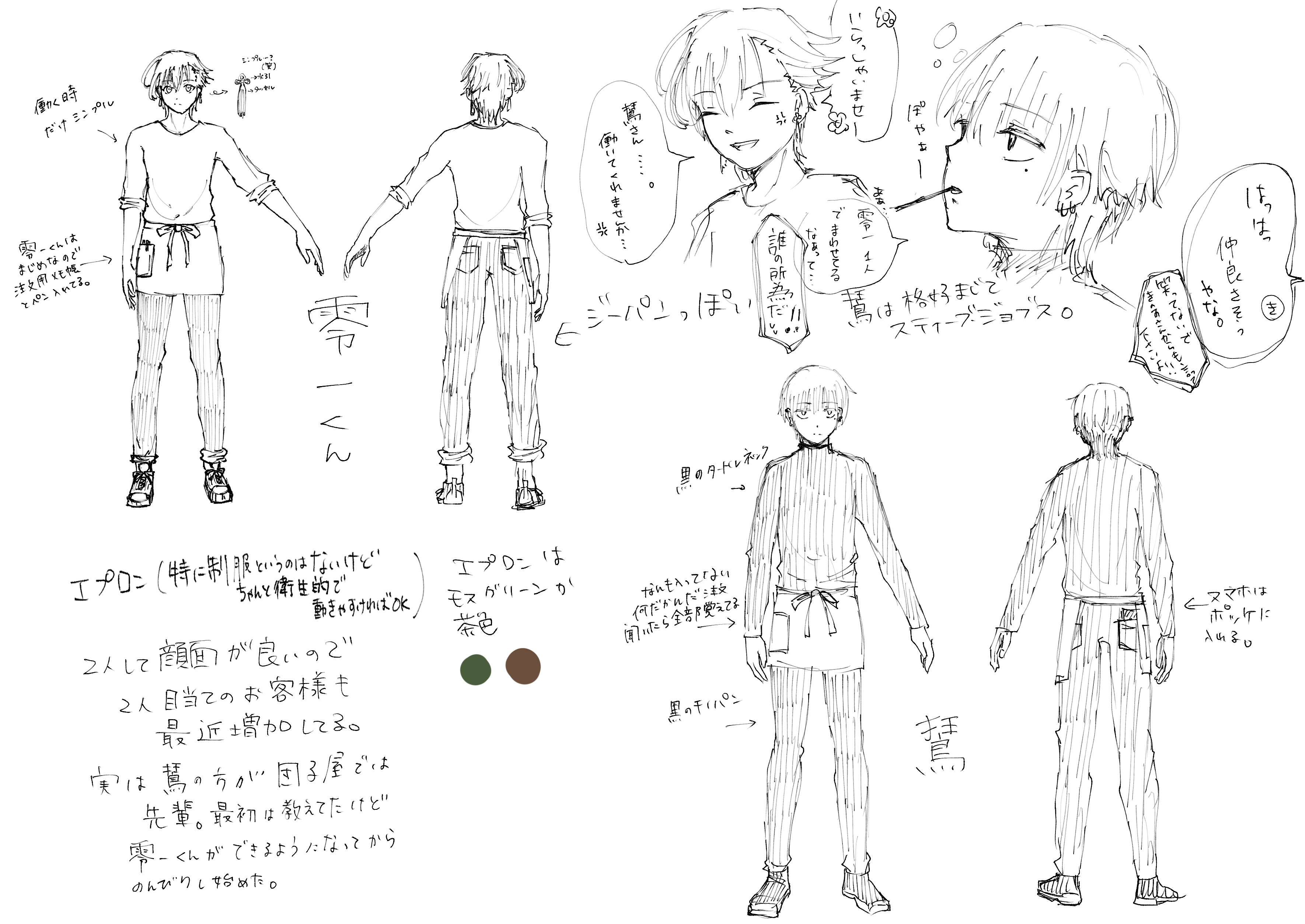 1話の鵟は団子屋でマイペースに働いてますが、零一くんが来てから零一くんが率先して動いてくれるので